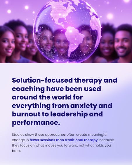 Solution-focused therapy and coaching have been used around the world for everything from anxiety and burnout to leadership and performance.